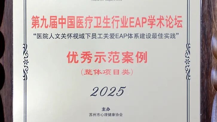 大会为2025年医院人文关怀视域下员工关爱EAP体系建设最佳实践案例颁奖,从全国各地医院申报的案例中评选出的医院整体项目类示范案例奖10个,医院整体项目类创新案例奖10个,医院单体项目类示范案例奖10个,医院单体项目类创新案例奖15个。经专家组评审,江南大学附属医院选送的《“附院微幸福”点亮人文关怀》获医院整体项目类示范案例奖。