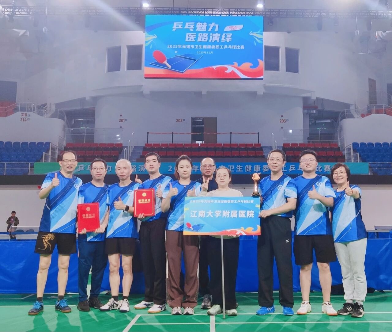 初冬微寒,赛场火热。11月8日至9日,无锡市卫生健康委职工乒乓球赛在世界跆拳道无锡中心举办。江南大学附属医院代表队在比赛中全力以赴、奋勇拼搏,最终荣获团体赛第四名(较上届提升一名)、男子双打第七名的好成绩。